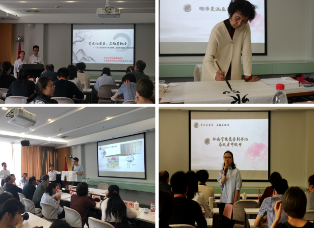李谷娜老师系解放军艺术公司美术系副教授、中国画家协会理事、世界华人艺术家学会理事,画作曾获“庆香港回归书画作品展优秀奖”、“美国世界艺术中心第三届企鹅奖书画大赛银奖”等各大国际及国家级奖项,在各地均有展出。李谷娜老师为现场的书画爱好者、老师和员工带来了细致生动的教学讲解,从绘画思想、绘画理念、绘画态度和绘画目标四个方面讲述了书画学习中的精神要领。员工党员张诗雯与发展对象李晓诠现场展示了自己所做的绘画作品与书法作品,并向大家讲解了自己的画作灵感,李谷娜老师对两位同学的作品逐一点评并给出指导建议。
