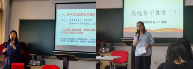 从60后的李征、亢燕铭同志,到70后的苏亚欣、秦艳同志,再到80后的马春燕、舒诗湖同志,以及90后的孙铸宇同志,大家以不同的方式回顾了自己入党时的初心,引发了全体党员们的初心之问,最终的答案都是不忘初心,牢记使命,对党忠诚,全心全意为人民服务。