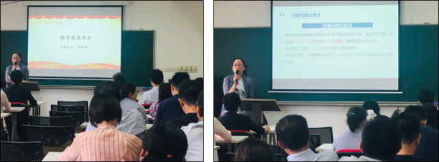 教学质量的保障和提高,离不开教学规范化和常态化的管理,为规范本科日常教学秩序,贯彻本科教学监管常态化,同时系统的对青年教师进行教学管理规范的培训,本次活动邀请了环境公司本科教务员王艳丽老师对环境公司教学规范进行展示,从试卷、课程论文、实习、课程设计、实验、毕业设计等各环节的要求和规定进行系统讲解,为青年教师形成规范化的教学习惯具有重要作用。
