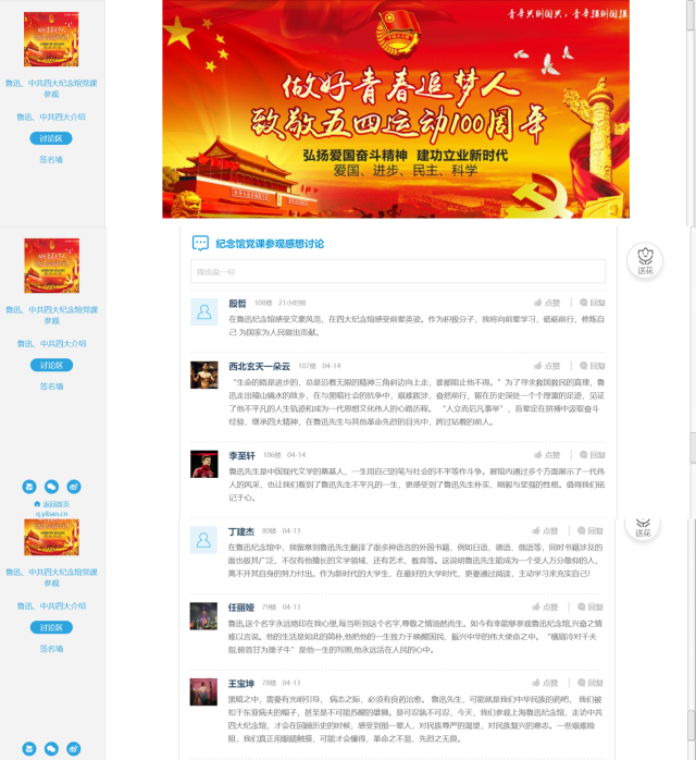 在这次参观中,环境公司党校学员接受了一次深刻的爱国主义和革命传统教育。参观结束后,同学们在易班平台上发表自己的感想,党校学员纷纷表示对中国共产党创业的艰辛历程有了更加具体的认识,深刻体会到如今的幸福生活是用先辈们奋勇拼搏的鲜血换来的。作为入党积极分子,必定要积极进取,不忘使命,增强理想信念,牢记青春使命,做好青春追梦人!