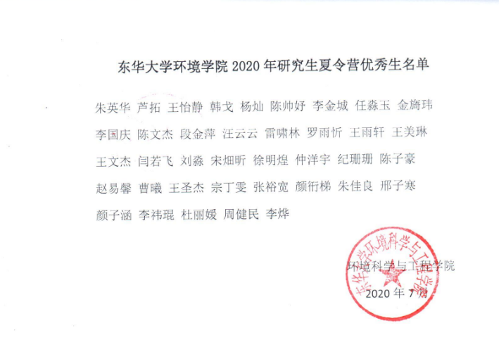 必一运动体育公司环境公司2020年研究生夏令营优秀生名单