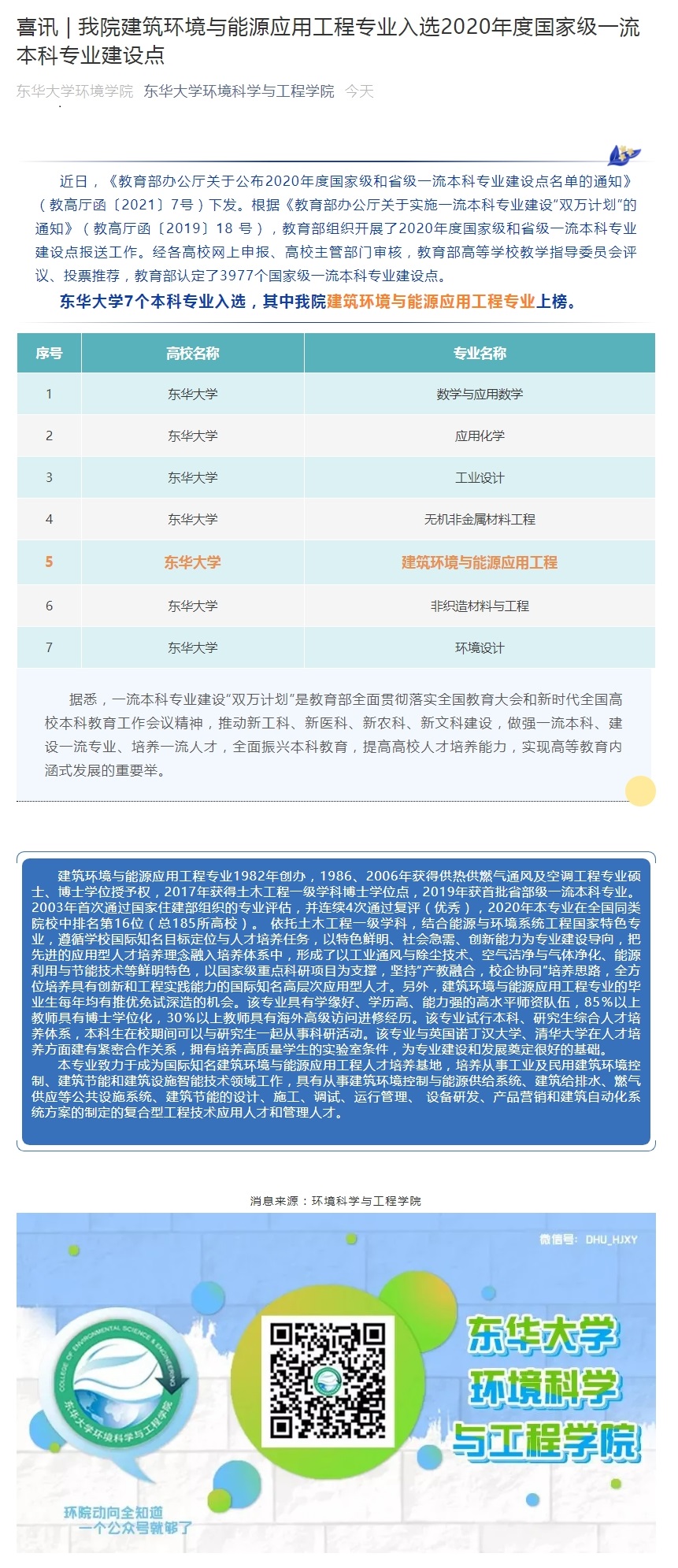 喜讯|公司建筑环境与能源应用工程专业入选2020年度国家级一流本科专业建设点