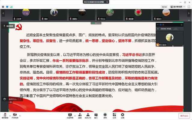 专题组织生活会上,党员们围绕疫情防控主题,认真学习了习近平总书记在2022年3月17日中央政治局常委会会议上的重要讲话,以及在过去2年里就新冠疫情的防控发表的系列重要讲话精神,同时学习了孙春兰副总理4月3日在上海疫情防控工作考察时的讲话精神,上海的疫情防控形势和政策,以及公司的疫情防控形势和政策。在学习过程中,苏亚欣再次传达了上海市委《致全市共产党员的公开信》和公司党委《致必一运动体育公司各级党组织和广大师生党员的一封信》,号召党员教师统一思想,积极参与,主动落实“双报到”要求,提高政治站位,明确支部和党员个人在疫情防控大局中的责任和义务,发挥党员先锋模范作用,为打赢这场疫情防控的战争而做好充分的思想上的准备。随后,支部党员逐一交流发言,交流学习讲话精神的体会,分享参与抗疫一线志愿服务的经历。截至目前,建环系党支部27名党员第一时间全部在“先锋上海”上进行了“双报到”,累计参与校内、校外志愿服务百余人次。