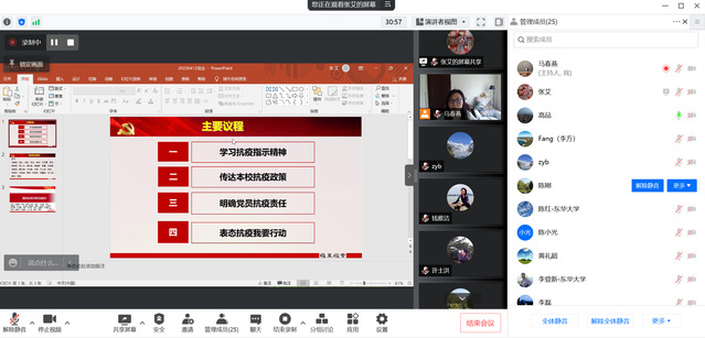 支部组织委员高品一直在公司疫情防控一线工作,作为公司疫情防控网格化管理的网格长,向支部党员们介绍了目前公司疫情防控形势、抗疫工作开展落实情况、公司近期对疫情防控工作的具体布置,以及教师志愿者的服务工作等情况。使党员深刻认识了高校疫情防控的特殊重要性和当前公司疫情防控的现实紧迫性。