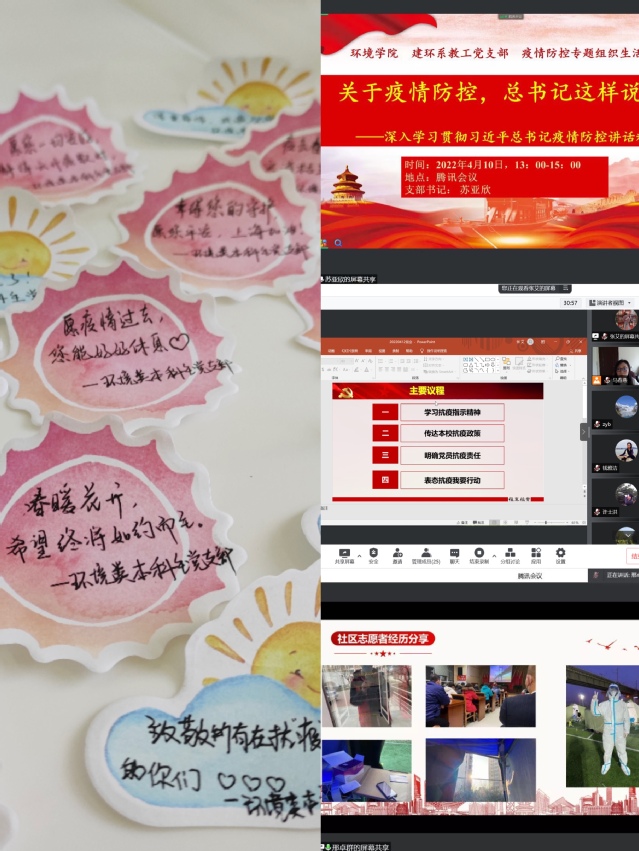 堡垒无言,却能凝聚强大力量,铸就铜墙铁壁。在公司党委的号召下,师生党支部创新方式方法开展“三会一课”、主题党日,筑牢坚强的“红色堡垒”。环工系党支部在线召开疫情防控专题组织生活会,组织学习相关指示精神,号召党员负起特殊责任,扛起特殊担当;建环系党支部积极发挥党员先锋模范作用,在校内、校外志愿活动、线上教学、科研以及公司团队建设工作中,做到“三个坚持”,投身抗疫斗争中;环境类本科生党支部积极响应公司党委“凝心聚力,众志成城,科学防疫,共克时艰”的号召,以“校园防疫,党员先行——最可爱的守‘沪’人”为题开展线上党课,让党旗在疫情防控斗争第一线高高飘扬;建环能环本科生党支部党员通过线上会议充分交流疫情蔓延以来的学习成效、心得感悟和行动实践,纷纷表示,唯有危难,方显担当,要继续切实发挥党员的先锋带头作用。此外,教工党支部还通过多种方式积极发挥党组织、党员、研究生导师和班导师的作用,充分关心员工的学习和心理健康,构筑起抗击疫情的“红色防线”。