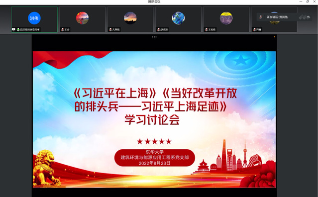 为迎接二十大胜利召开,引导支部党员深刻认识“两个确立”的决定性意义,争当“两个维护”示范引领者,按照公司、公司党委要求,2022年8月23日下午,环境公司建环系党支部开展学习讨论会,集体学习《习近平在上海》、《当好改革开放的排头兵-习近平上海足迹》。支部全体党员教师参加学习,会议由支部书记贾洪伟主持。