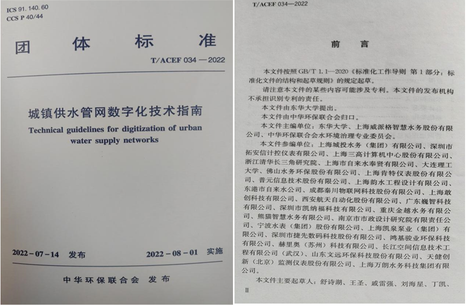 公司主持《城镇供水管网数字化技术指南》标准制订 助力供水行业数字化转型和智能化升级