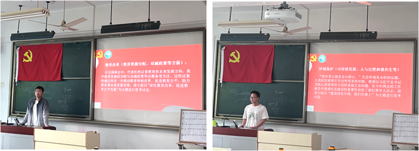 本次“汲取二十大精神,凝聚奋进力量”知识竞赛分为必答题、抢答题、趣味问答题、论述题四个环节,将党的二十大精神、时事政治、党章党史等主要内容纳入到竞赛题目之中。竞赛现场,学员们纷纷踊跃答题,努力为自己的小组赚取积分。随着趣味问答题环节的开始,现场的气氛愈发热烈,“你画我猜”这种有趣的形式使得所有组员都积极投身其中。论述题环节尤为精彩,引发了各小组的热烈讨论,纷纷针对自己小组的议题提出了自己的独到见解,彰显了新时代青年学子对时事政治的关注和独立思考的能力。