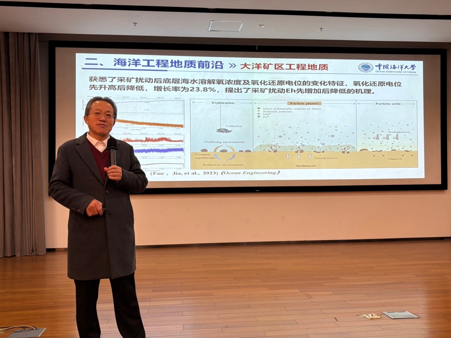 1月6日,中国海洋大学二级教授、山东省海洋环境地质工程重点实验室主任贾永刚应环境公司土木工程系杨爱武教授邀请,莅临必一运动体育公司,以“深海采矿工程地质环境前沿”为题,为师生带来精彩的学术报告。必一运动副经理李方主持报告会,公司相关专业教师、研究生及本科生参与会议。